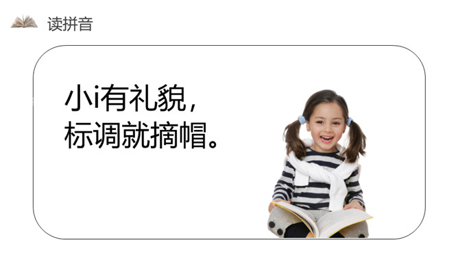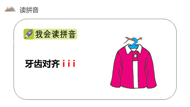 牙齿对齐 i i i。一只乌鸦 u u u。小鱼吐泡 ü ü ü。像个树杈 y y y。屋子屋子 w w w 。小i有礼貌,标调就摘帽。ī这件衣服真好看!í咦!我的铅笔在哪儿?ǐ拿把椅子您请坐。ì你的意思我明白。所属专题:《iuüyw》ppt。