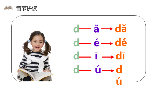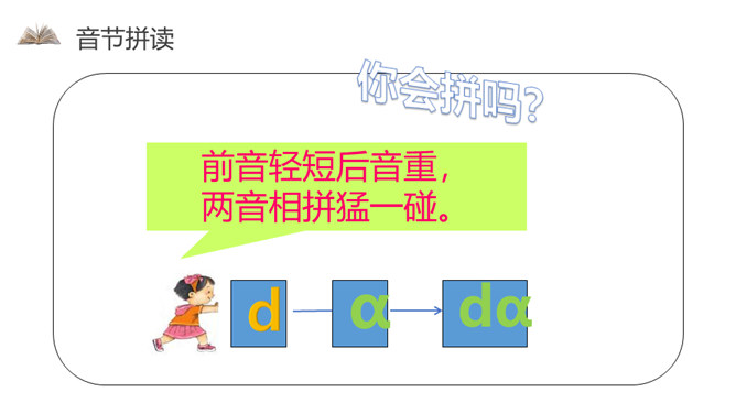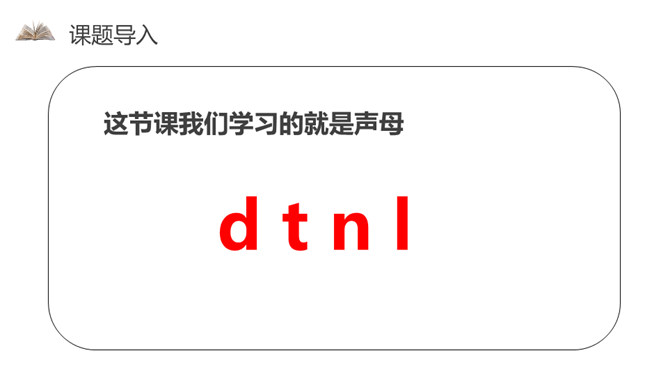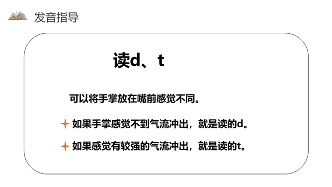 小朋友们,欢迎你们来到拼音王国!学习拼音用处大,识字读书要靠它,帮我学好普通话,看谁学得顶呱呱!这节课我们学习的就是声母。读d、t,可以将手掌放在嘴前感觉不同。如果手掌感觉不到气流冲出,就是读的d。如果感觉有较强的气流冲出,就是读的t。读n、l,可以用双手捂住耳朵。如果耳膜感到明显的鸣声,就是读的n。如果耳膜没有明显的鸣声,就是读的l。所属专题:《dtnl》ppt。