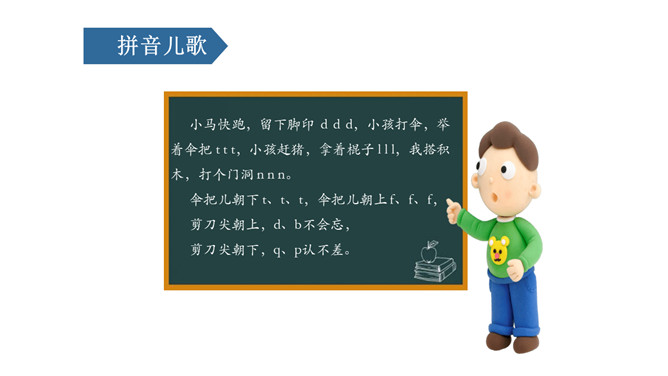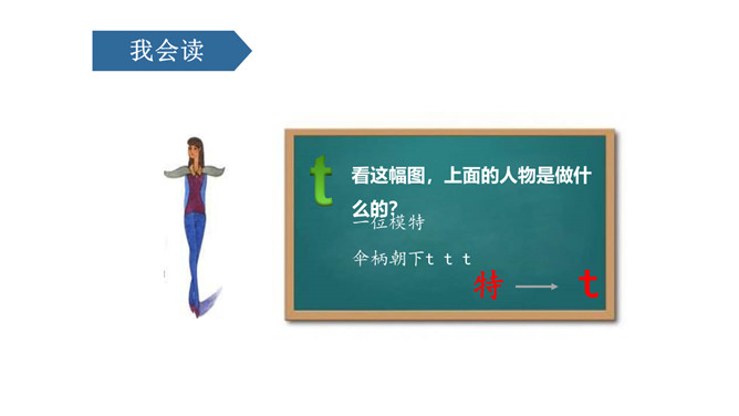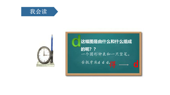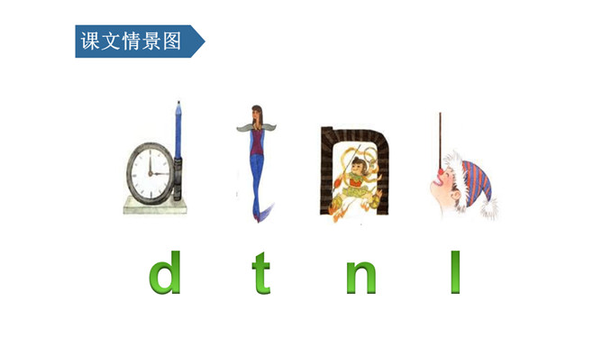 这幅图是由什么和什么组成的呢??一个圆形钟表和一只竖笔,舌抵牙床d d d。看这幅图,上面的人物是做什么的?一位模特,伞柄朝下t t t。图中画的是什么?看起来像什么?哪吒出关 n n n,两个门洞 m m m,一个门洞 n n n。图中画的是谁?他在干什么?小丑鼻子顶着一根木棍。一根木棍 l l l。小马快跑,留下脚印 d d d,小孩打伞,举着伞把 t t t,小孩赶猪,拿着棍子 l l l,我搭积木,打个门洞 n n n。伞把儿朝下 t、t、t,伞把儿朝上 f、f、f,剪刀尖朝上,d、b不会忘,剪刀尖朝下,q、p认不差。所属专题:《dtnl》ppt。