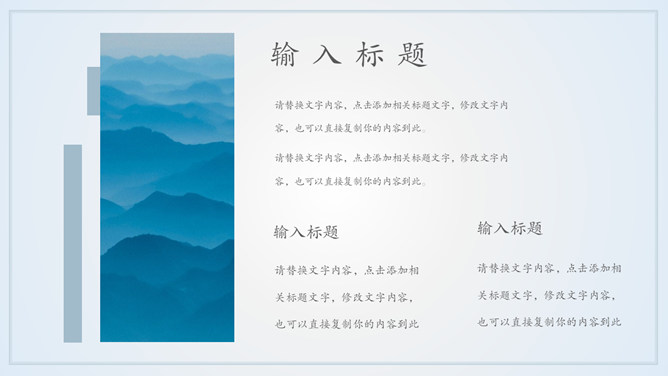 山峰蓝色蒙版图层效果PPT模板