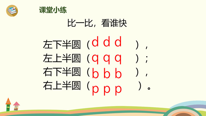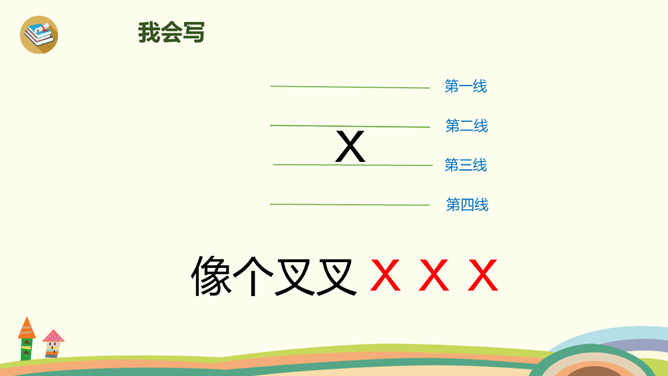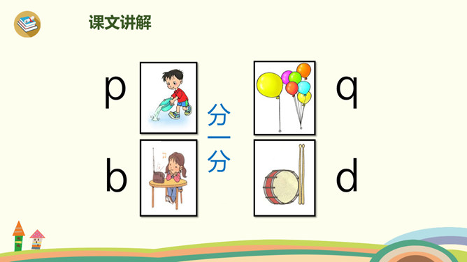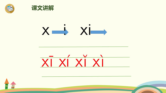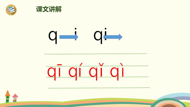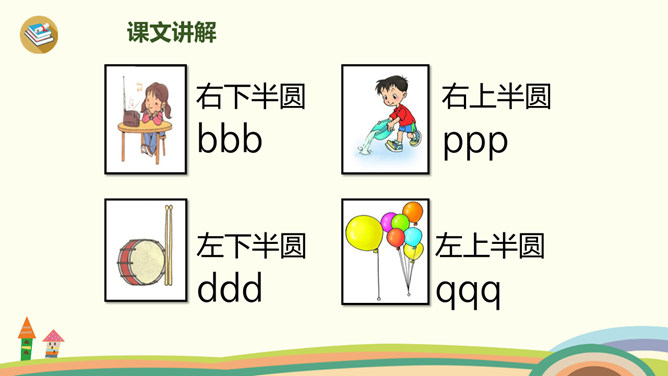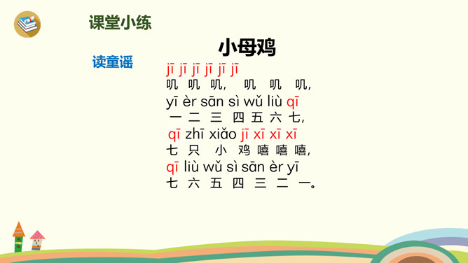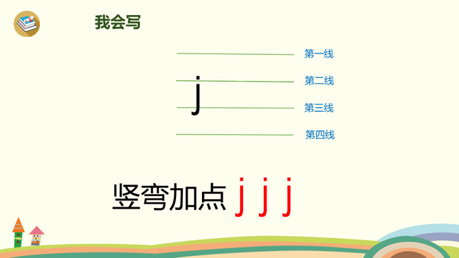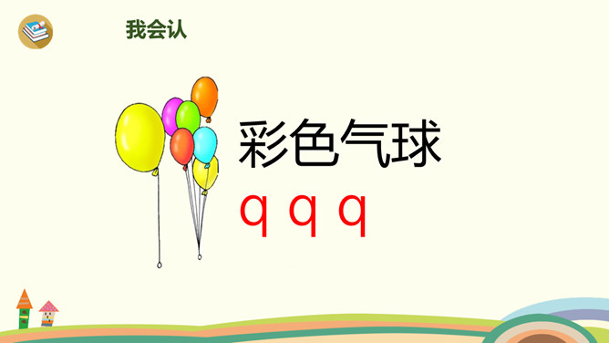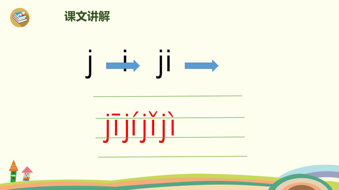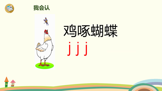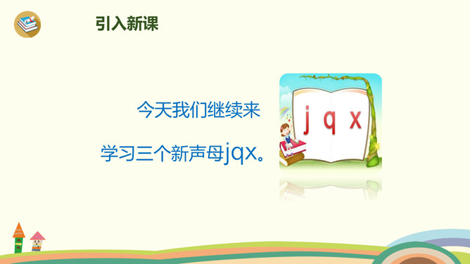 今天我们继续来学习三个新声母jqx。仔细观察左图:爸爸和叔叔在干什么?弟弟又在干什么?鸡啄蝴蝶 j j j,竖弯加点 j j j。切个西瓜xxx ,像个叉叉xxx。彩色气球qqq,左上半圆qqq 。课后作业:今天,我们又认识了声母家族的三个成员,以及他们与不同单韵母的拼读写。请你把他们带回家,背一背、默一默,看看你们都记得吗?所属专题:《jqx》ppt。