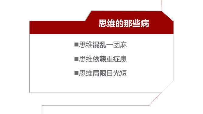 《不要等到毕业以后》读书笔记PPT。思维的那些病:思维混乱一团麻,思维依赖重症患,思维局限目光短。你需要建立思维框架。