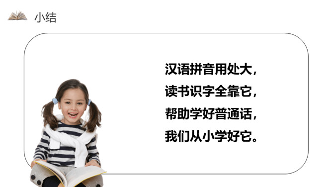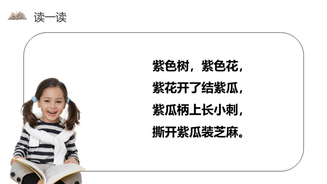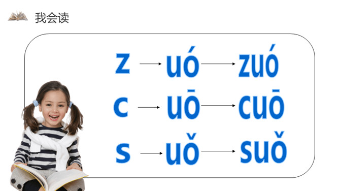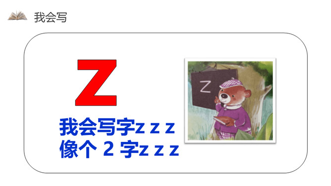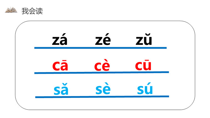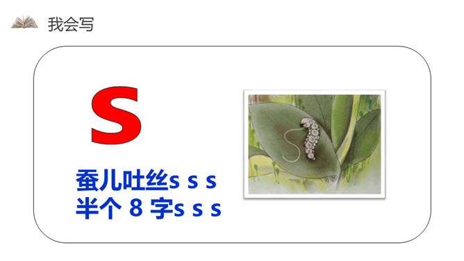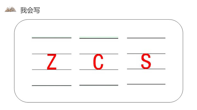 我会写字z z z,像个 2 字z z z。小小刺猬c c c,半个圆圈c c c。蚕儿吐丝s s s,半个 8 字s s s。声轻介快韵母响,三音连读很顺当。紫色树,紫色花,紫花开了结紫瓜, 紫瓜柄上长小刺,撕开紫瓜装芝麻。小结:汉语拼音用处大,读书识字全靠它,帮助学好普通话,我们从小学好它。所属专题:《zcs》ppt。