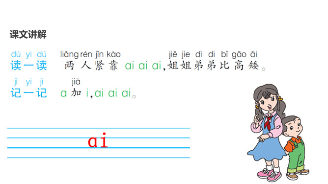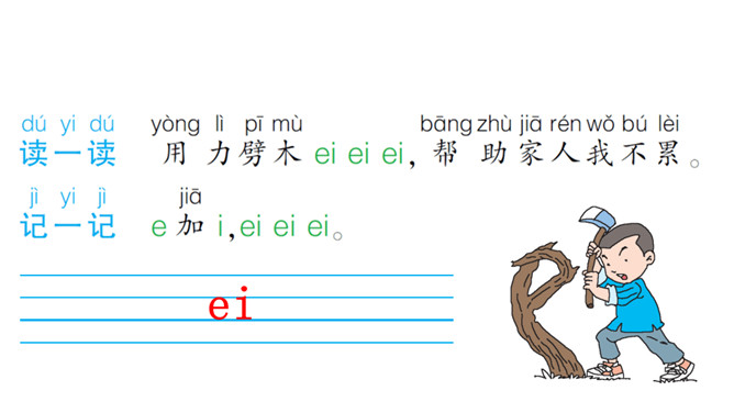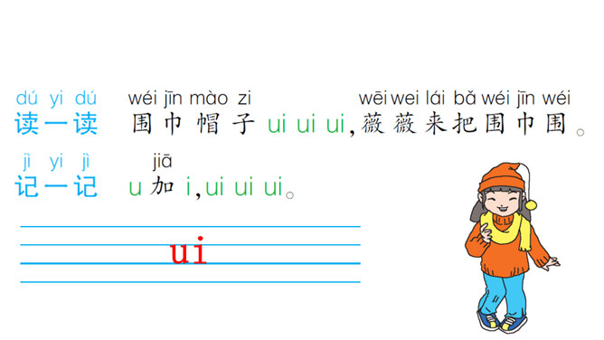 学习目标:1.学会3个复韵母ɑi、ei、ui,读准音,认清形,能正确书写。2.能准确拼写ɑi、ei、ui与声母组成的音节。3.认识4个生字,能借助汉语拼音正确朗读句子,会读儿歌。认识复韵母。扎篱笆,围树苗,一棵矮来一棵高。éi éi éi 小羊羔,快快过来吃青草。所属专题:《ai ei ui》ppt。