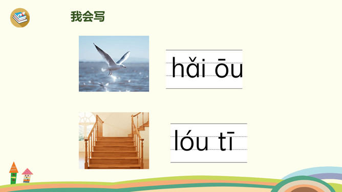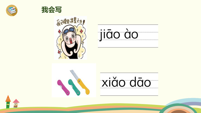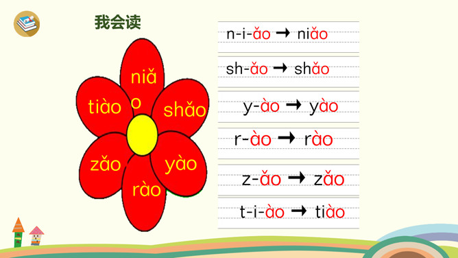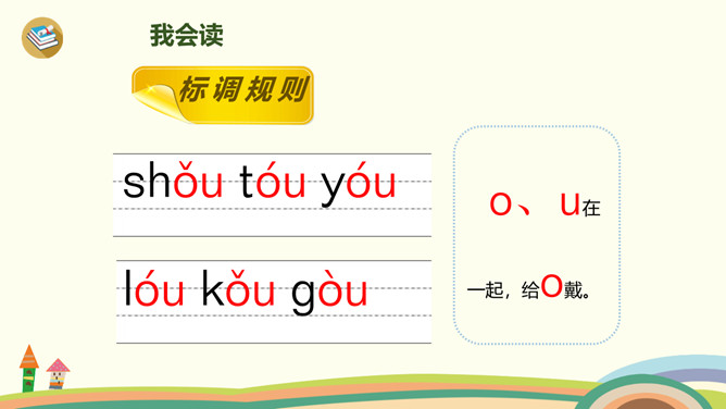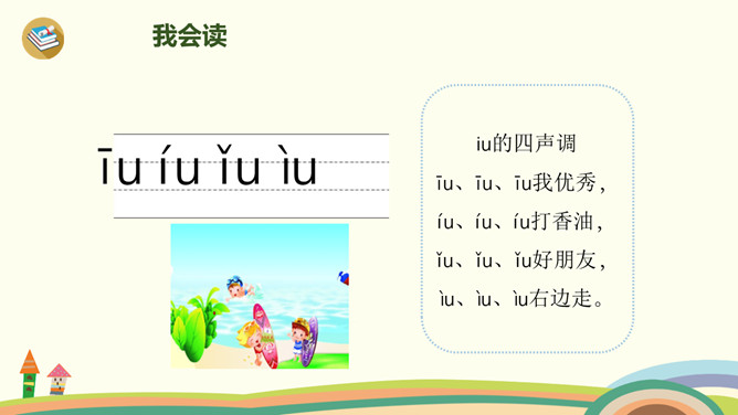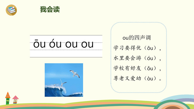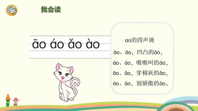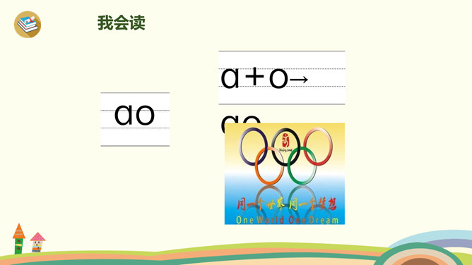 小象参加的运动会叫什么运动会?ao的四声调,āo、āo,凹凸的āo,áo、áo,嗷嗷叫的áo,ǎo、ǎo,穿棉袄的ǎo,ào、ào,别骄傲的ào。同桌拍手读一读儿歌,注意拍手和朗读的节奏。你能说说小船飘到哪里了吗?干什么去了?台湾,去接台湾小朋友。台湾小朋友来到了哪儿?来到“我”学校。“我”喜欢台湾小朋友吗?你从哪里看出来的?喜欢,伸出双手紧紧握,热情的话儿说不完。拼一拼,读一读,读给爸爸妈妈听听。所属专题:《ao ou iu》ppt。
