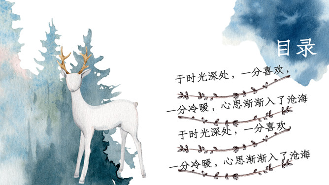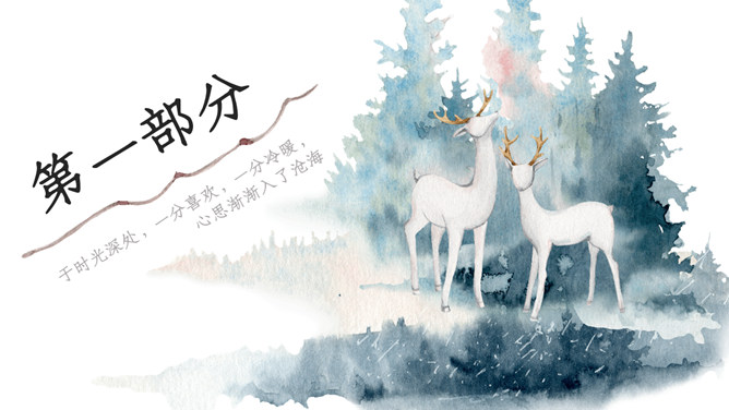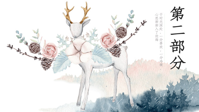 淡雅唯美森系水彩晕染小鹿PPT模板