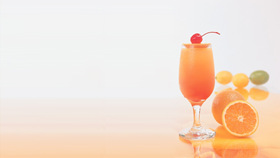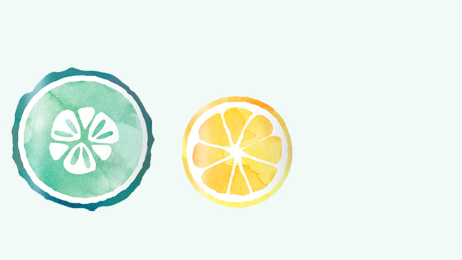 水彩橙子柠檬切片PT背景。一组橙子、橘子、柠檬切片幻灯片背景,水彩效果设计,共4张,清新淡雅色彩。