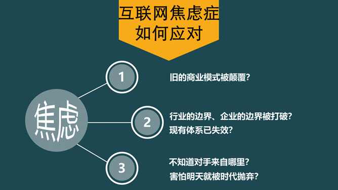《时代的变换》读书笔记PPT。互联网焦虑症如何应对?旧的商业模式被颠覆?行业的边界、企业的边界被打破?现有体系已失效?不知道对手来自哪里?不知道对手来自哪里?