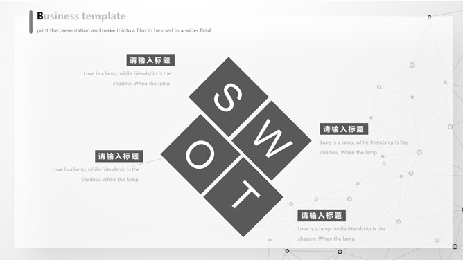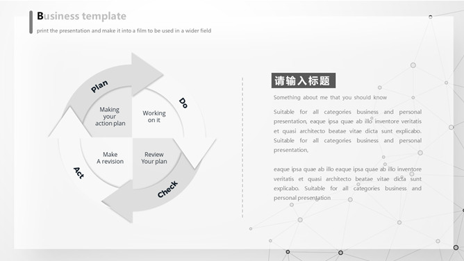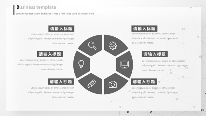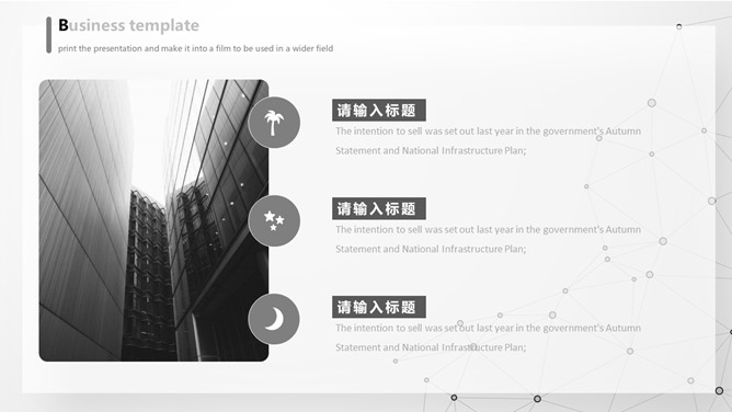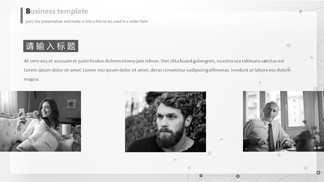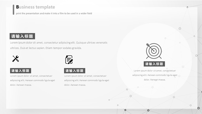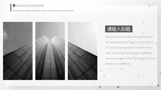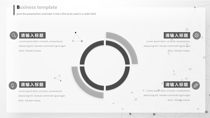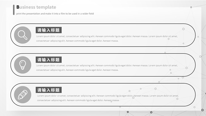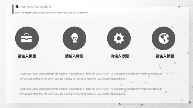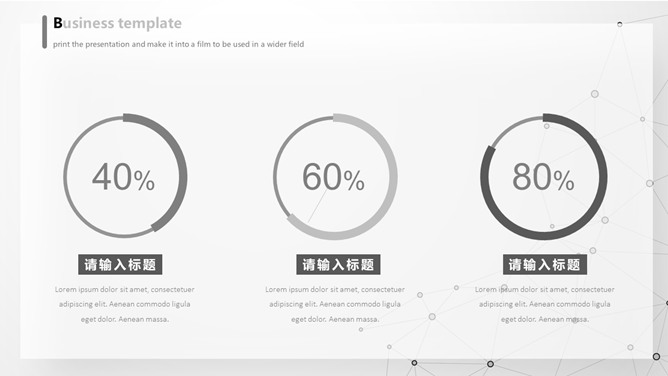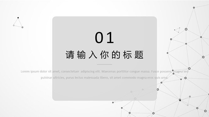 灰色极简点线粒子科技PPT模板。一套简洁通用幻灯片模板,素雅黑灰色调,科技风点线粒子背景,大气通用。