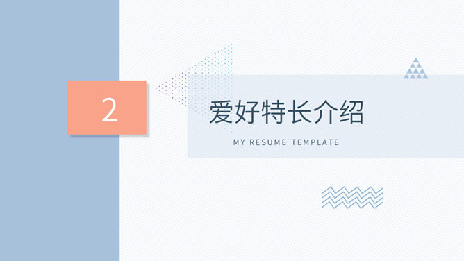 淡雅个人简历自我介绍PPT模板。一套自我介绍个人简历幻灯片模板,淡雅莫兰迪配色,简洁大色块装饰。