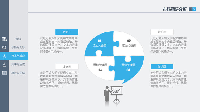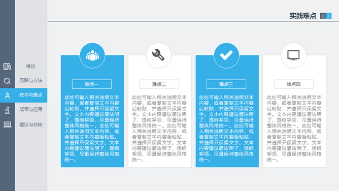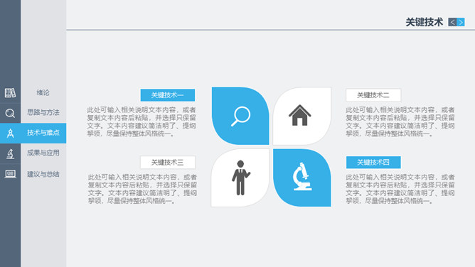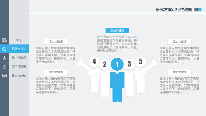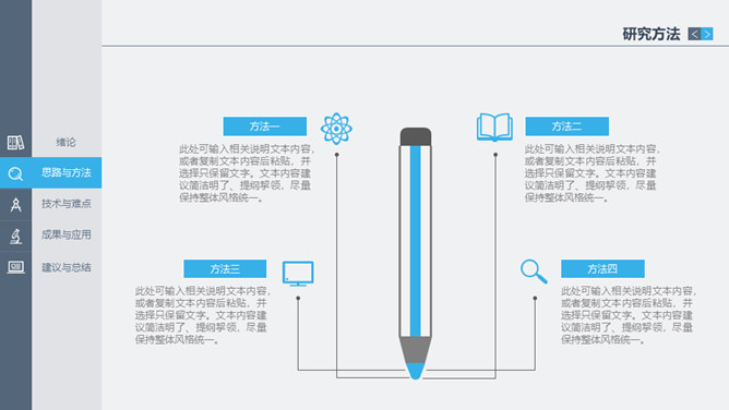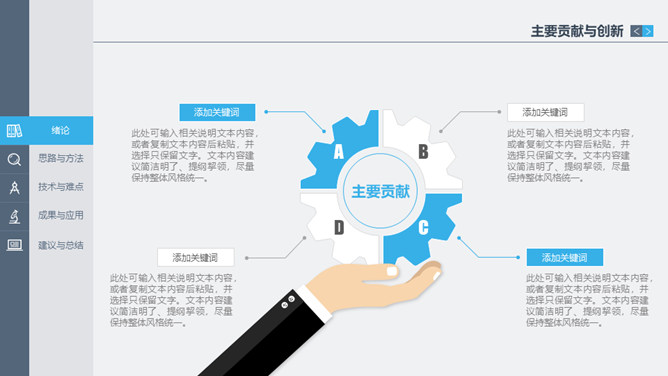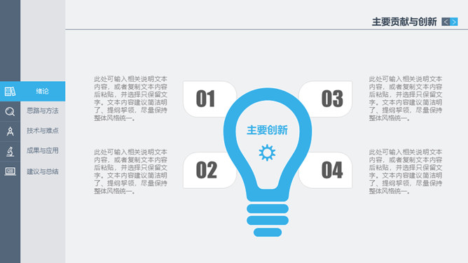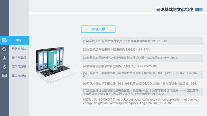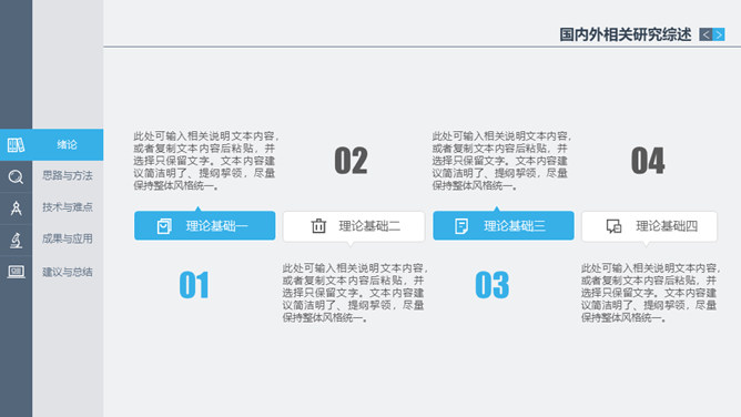 稳重侧边导航论文答辩PPT模板。一套毕业设计论文答辩幻灯片模板,大气稳重蓝色配色,创意侧边栏导航。