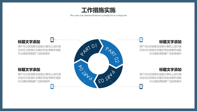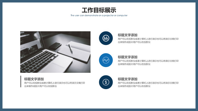 大气深蓝商务汇报PPT模板。一套商务风格幻灯片模板,大气深蓝配色,简约设计,动态播放,适合工作总结等用途。