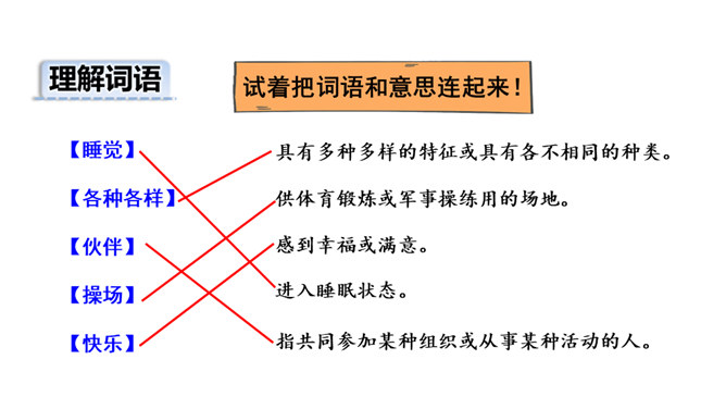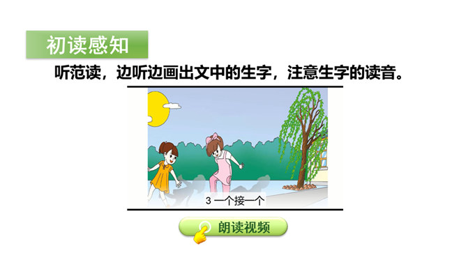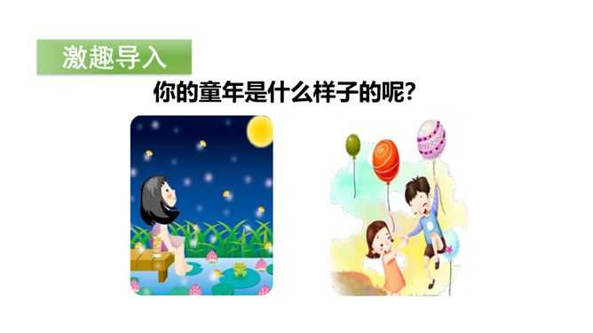你的童年是什么样子的呢?让我们一起走进课文,看看作者的童年生活。听范读,边听边画出文中的生字,注意生字的读音。请同学们自由朗读课文,努力读准字音、读通句子。指名读课文,同学互评:字音是否正确,句子是否通顺。 初读课文后,你感受到了什么?示例:初读课文后,我感受到了童年生活的乐趣。读一读下面的句子,看看你有什么发现?试着把词语和意思连起来!所属专题:一个接一个ppt。