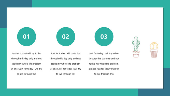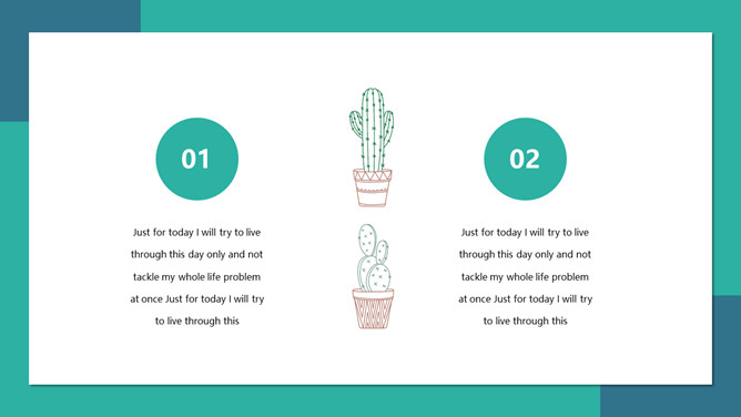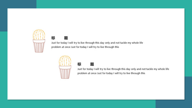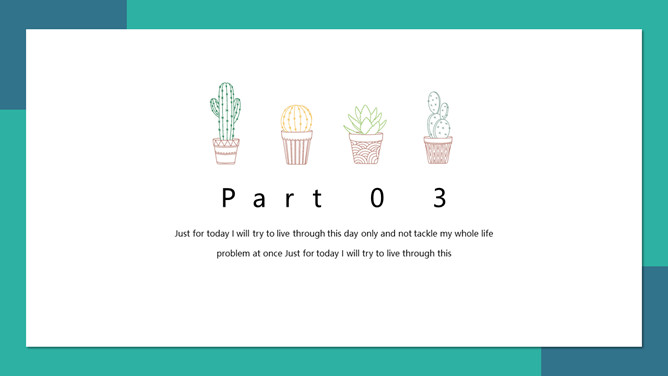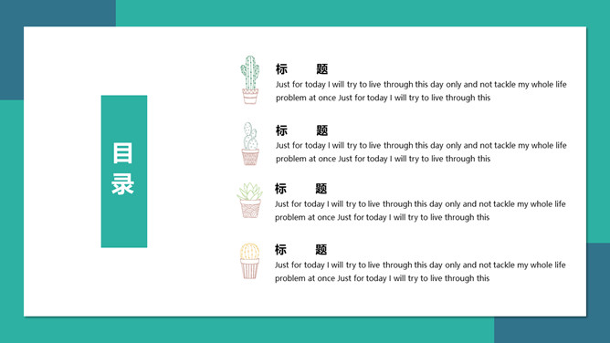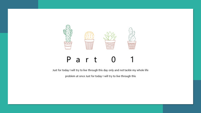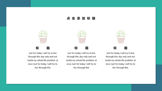 简洁绿色盆栽多肉植物PPT模板。一套简约通用幻灯片模板,绿色主色调,清新多肉植物盆栽装饰,通用性强。