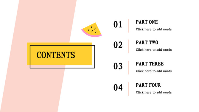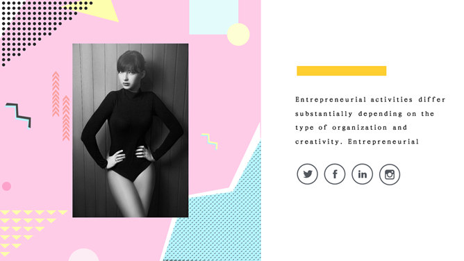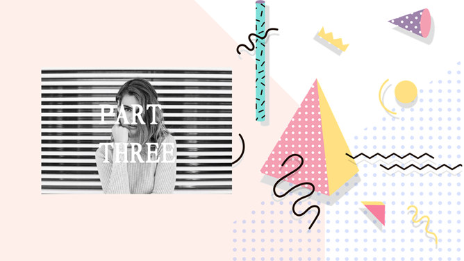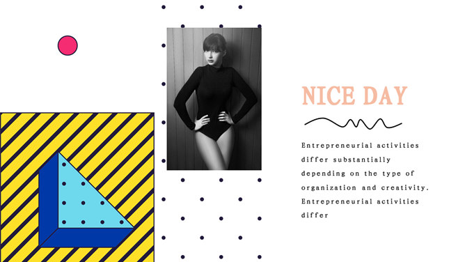 粉色系时尚创意孟菲斯PPT模板。一套精美时尚幻灯片模板,时尚创意孟菲斯风格设计,粉色系主色调,适合女生使用。