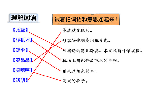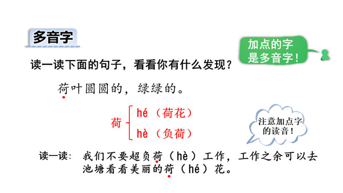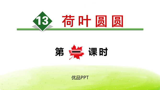 荷叶是夏天一首清凉的小诗歌,是阳光下跳动的绿色音符......夏天的荷塘可美丽了,让我们走进课文去看看吧!请同学们自由朗读课文,努力读准字音、读通句子。指名读课文,同学互评:字音是否正确,句子是否通顺。有感情地朗读课文,读出小动物们对荷叶的喜爱。初读课文后,你感受到了什么?示例:初读课文后,我感受到了小动物们对荷叶的喜爱,夏日的乐趣。所属专题:荷叶圆圆ppt。