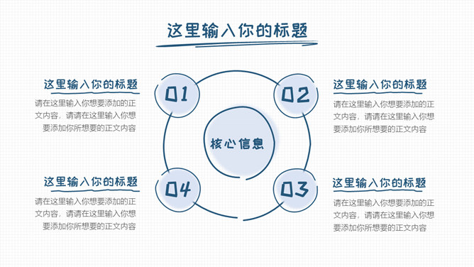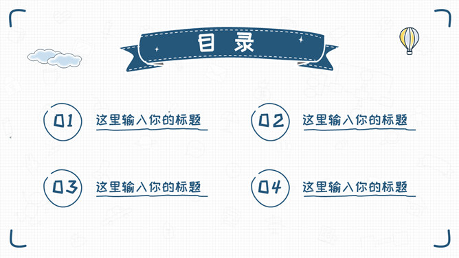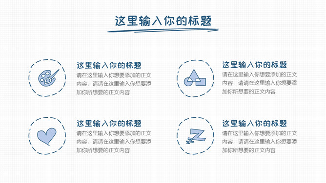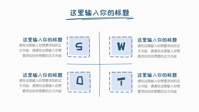 简洁清新手绘通用PPT模板。一套简约通用幻灯片模板,清新蓝色主色调,小格子背景,卡通手绘风格设计。