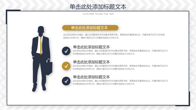 大气通用工作总结汇报PPT模板。一套通用型工作汇报总结幻灯片模板,波浪纹理背景,蓝金配色,简洁大气商务风。