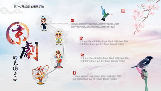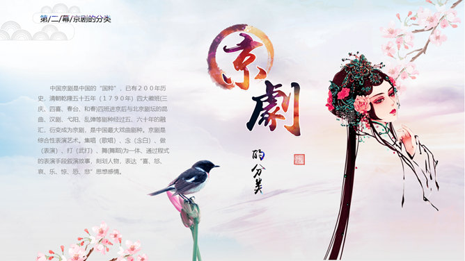 国粹京剧戏曲脸谱PPT模板。一套传统京剧戏曲主题幻灯片模板,好看的动态播放效果,适合国粹京剧文化相关介绍。