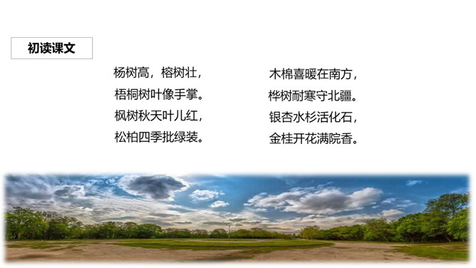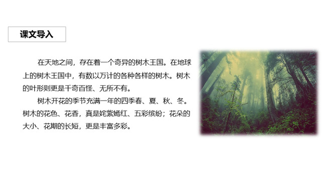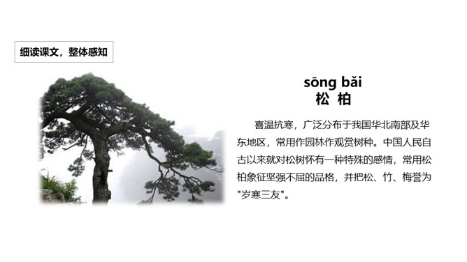 植树造林可以净化空气、美化环境、绿化祖国。树木是人类忠实的朋友,它们无私地为人类奉献出自己的全部,不仅为我们创造着美好的生活环境,还给我们带来了无限的欢乐。让我们好好的珍惜、好好的爱护这位朋友吧!所属专题:树之歌ppt。