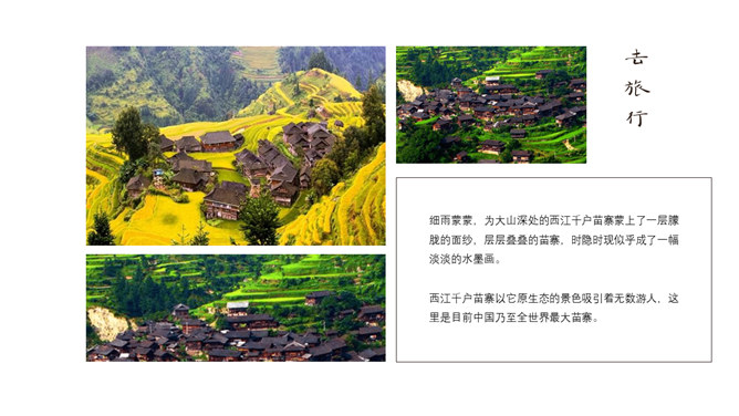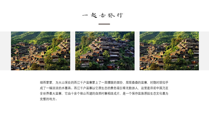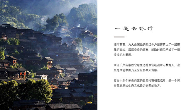 黔南西江千户苗寨介绍PPT模板。一套西江千户苗寨简介介绍幻灯片模板,适合制作相关旅游旅行攻略等用途。