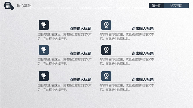 大气实用毕业论文答辩PPT模板。一套毕业设计、论文答辩、开题报告幻灯片模板,页面类型丰富实用,简洁大气。