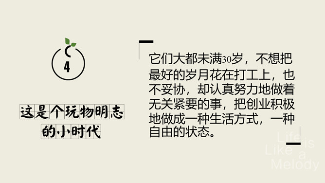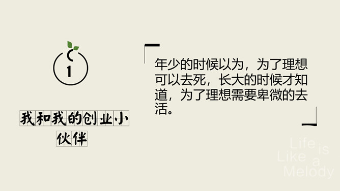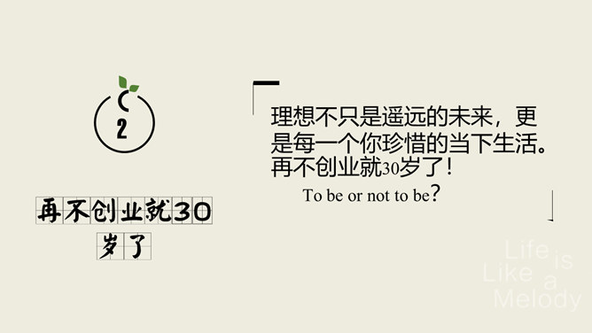 《就想开间自己的小店》读书笔记PPT。年少的时候以为,为了理想可以去死,长大的时候才知道,为了理想需要卑微的去活。理想不只是遥远的未来,更是每一个你珍惜的当下生活。再不创业就30岁了!