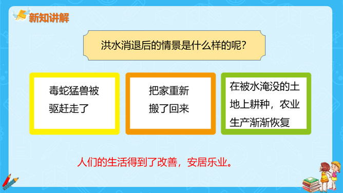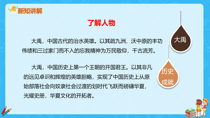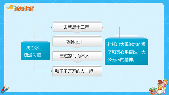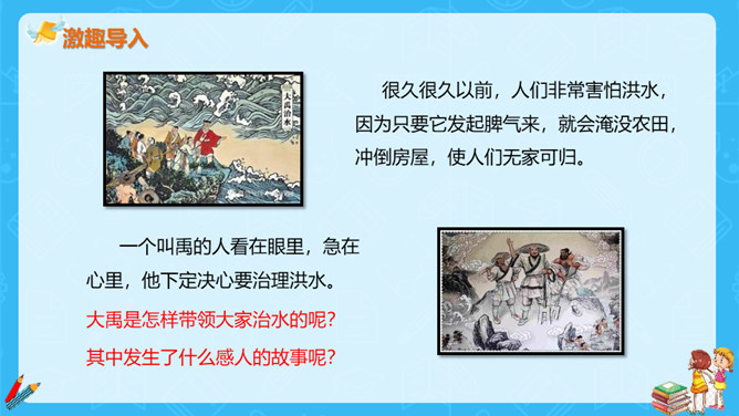 大禹是怎样带领大家治水的呢?其中发生了什么感人的故事呢?很久很久以前,发生了什么事呢?造成了什么后果呢?洪水消退后的情景是什么样的呢?本文通过叙述洪水泛滥成灾,鲧治水无功后他的儿子禹成功治水的故事,表现了禹不辞劳苦,全心全意为百姓造福的高贵品质。所属专题:大禹治水ppt。