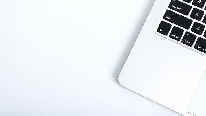 笔记本办公桌面PPT背景图片。一组简约笔记本电脑办公桌面幻灯片背景图片,JPG格式,1920X1010分辨率。