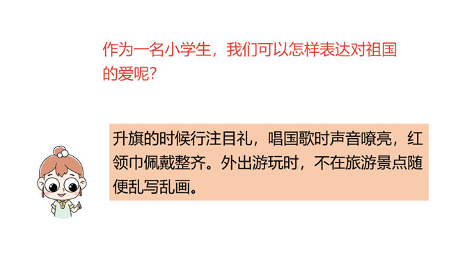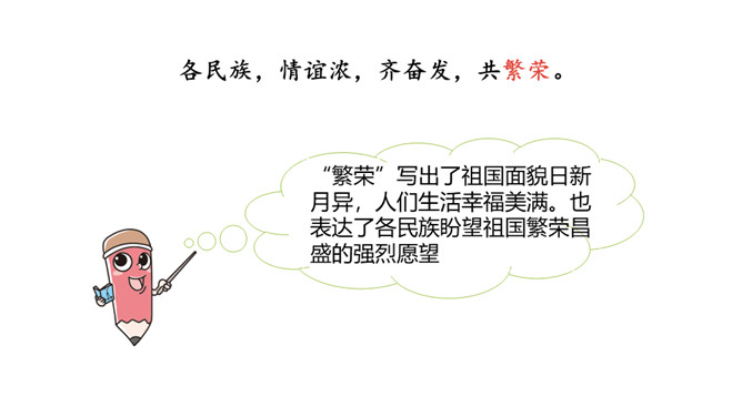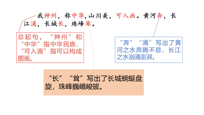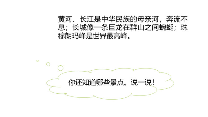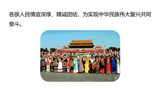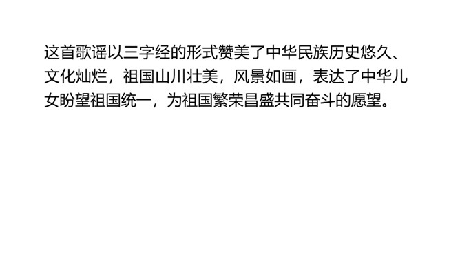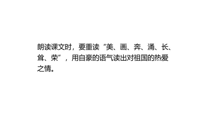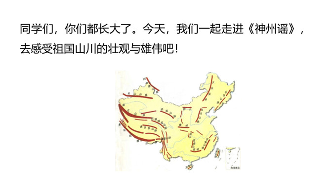 1.朗读课文,感受祖国的壮美。能在语言环境中感受“奔、涌”等词语的表达效果。 (重点)2.培养自己热爱祖国、热爱人民的感情。(难点)同学们,你们都长大了。今天,我们一起走进《神州谣》,去感受祖国山川的壮观与雄伟吧!朗读课文时,要重读“美、画、奔、涌、长、耸、荣”,用自豪的语气读出对祖国的热爱之情。各族人民情谊深厚、精诚团结,为实现中华民族伟大复兴共同奋斗。所属专题:神州谣ppt。