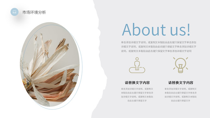 淡雅创意不规则几何PPT模板。一套创意通用幻灯片模板,淡雅莫兰迪配色,不规则几何形状装饰,通用性强。