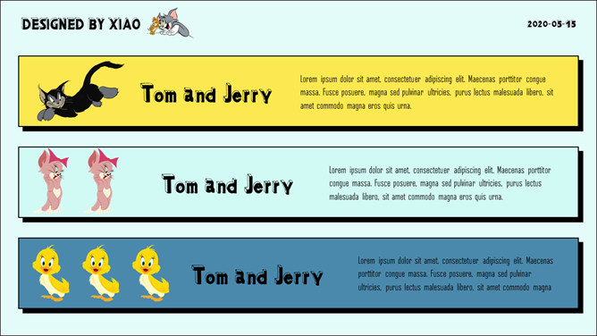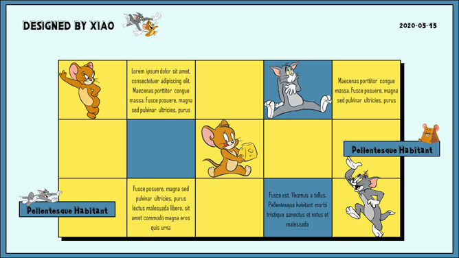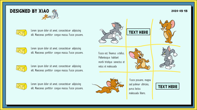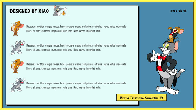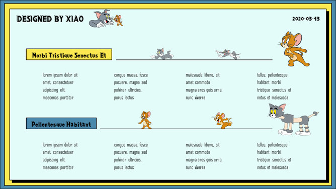 Tom and Jerry猫和老鼠PPT模板。一套可爱卡通风格幻灯片模板,动画片猫和老鼠主题,很有创意和设计感。