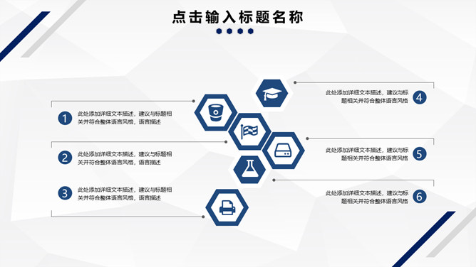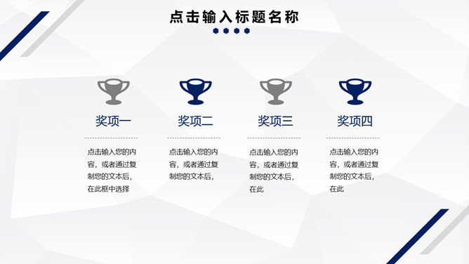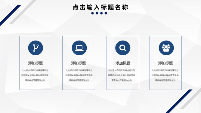 简约蓝色条纹工作汇报PPT模板。一套工作总结汇报幻灯片模板,简约稳重大气,深蓝条纹装饰,低面多边形背景。