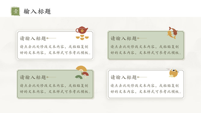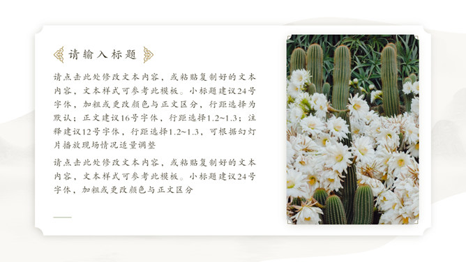 淡雅清新古典文艺PPT模板。一套精美设计幻灯片模板,淡雅绿色主色调,清新文艺范,古典元素装饰,通用型模板。