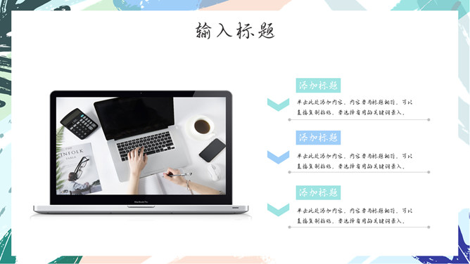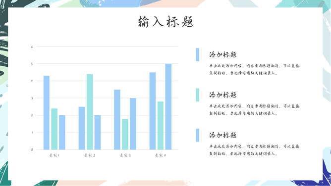 清新水彩遇见夏天PPT模板。一套清凉夏天主题幻灯片模板,艺术水彩效果设计,多图形图表页面,淡雅小清新风格。