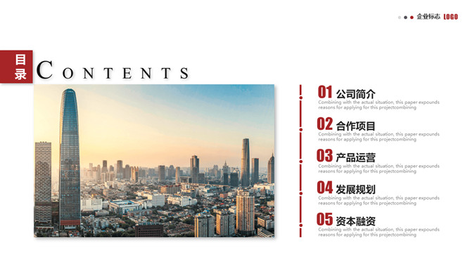 大气实用公司企业介绍PPT模板。一套企业公司介绍简介幻灯片模板,经典大气黑红主色调,页面类型丰富实用。