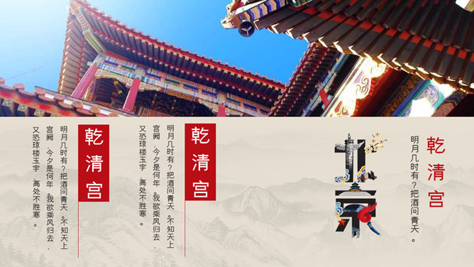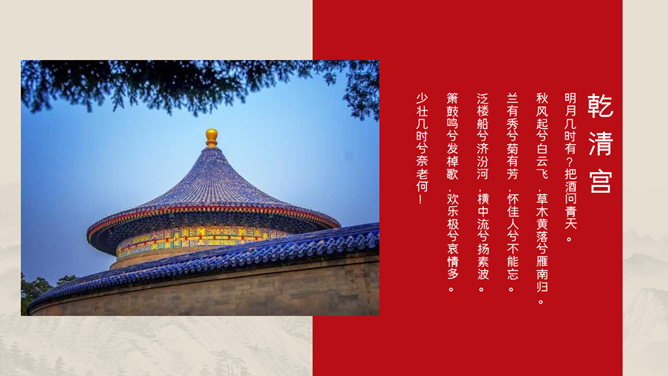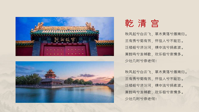 故宫建筑风景相册PPT模板。一套故宫主题幻灯片模板,精美多种设计排版,适合故宫古迹建筑相关主题演示。