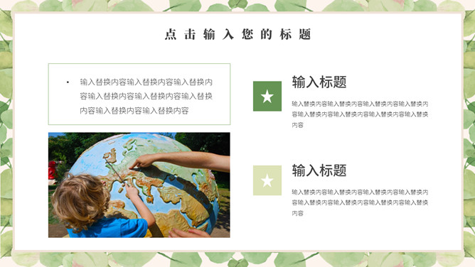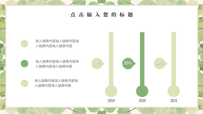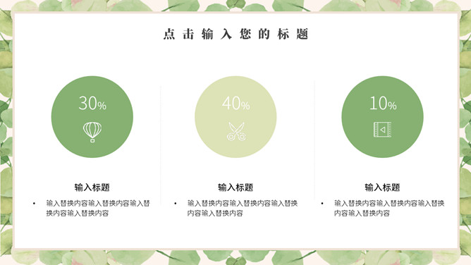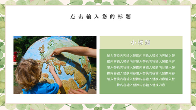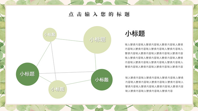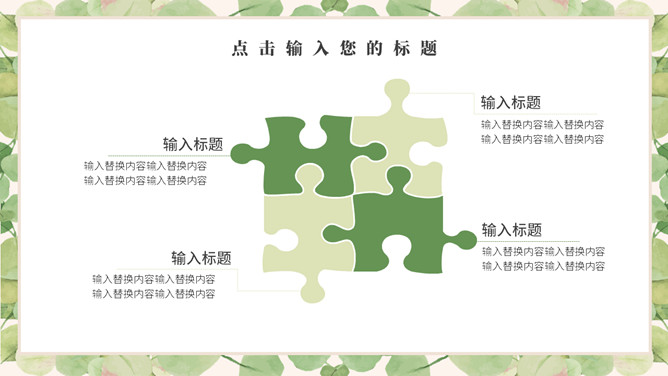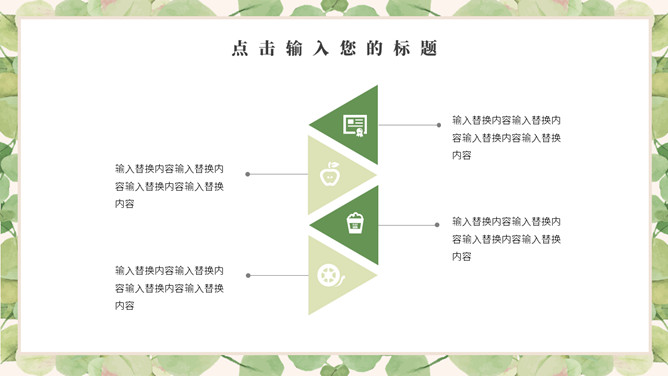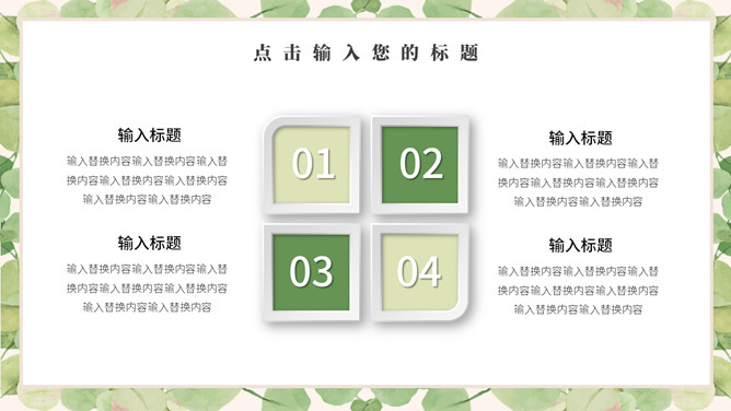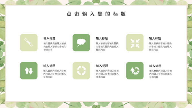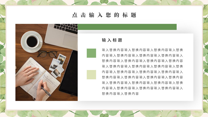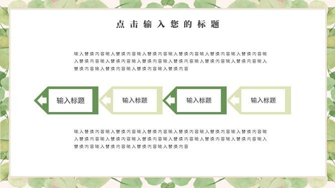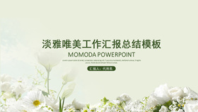 唯美淡雅清新绿色叶子PPT模板。一套简约设计幻灯片模板,唯美清新叶子背景装饰,淡雅配色,适合多种用途。