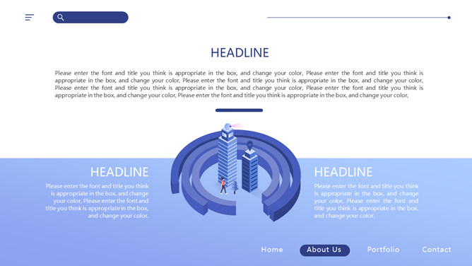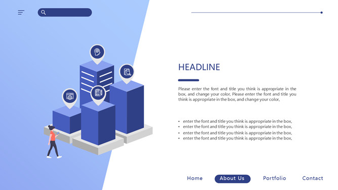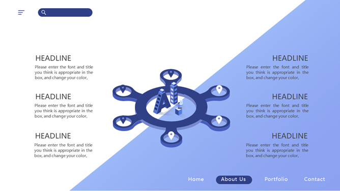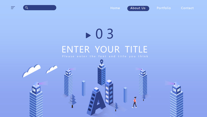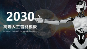 科技风AI人工智能PPT模板。一套简洁科技风幻灯片模板,蓝色主色调,2.5D设计风格,AI科技人工智能主题。