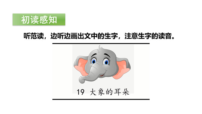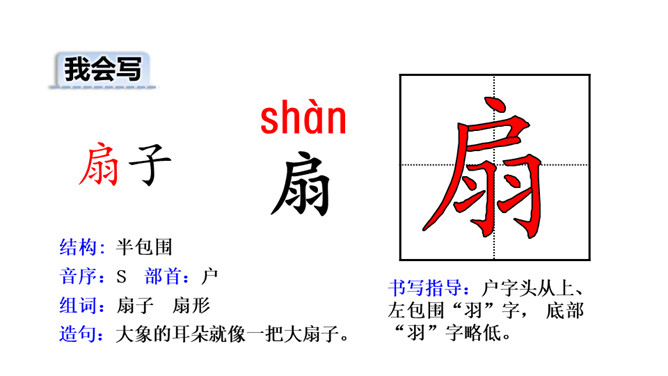 你对那个整天帮你打探“外界消息”的耳朵真的了解吗?可别犯小象的错误呦。初读课文后,你感受到了什么?示例:初读课文后,我感受到了要学会珍惜自己的东西,不要盲目学习别人的。书写指导:户字头从上、左包围“羽”字, 底部“羽”字略低。书写指导:左右平齐。右边“日”居上格、写扁,“又”居下格、稍宽。书写指导:走之从左、下包围里面的部分。里面部分横折钩的横段在横中线上。所属专题:大象的耳朵ppt。