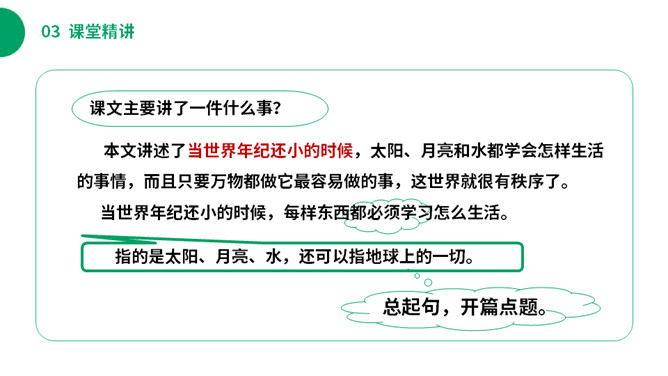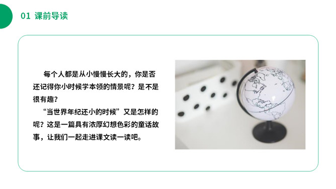 每个人都是从小慢慢长大的,你是否还记得你小时候学本领的情景呢?是不是很有趣?“当世界年纪还小的时候”又是怎样的呢?这是一篇具有浓厚幻想色彩的童话故事,让我们一起走进课文读一读吧。当世界年纪还小的时候,每样东西都必须学习怎么生活,星星聚集排列成星座,有一些星星先试着排成长颈鹿,然后棕榈树,又试了试排成玫瑰,最后才决定排成大熊星座。同时,还有其他的星星排成摩羯座、天龙座、金牛座、天鹅座。所属专题:当世界年纪还小的时候ppt。