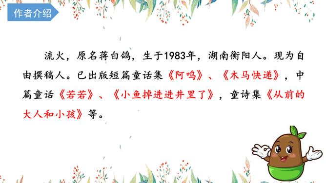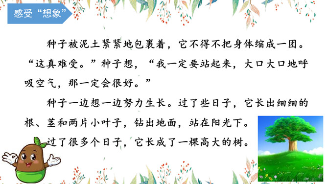 种子被泥土紧紧地包裹着,它不得不把身体缩成一团。“这真难受。”种子想,“我一定要站起来,大口大口地呼吸空气,那一定会很好。”这棵树的树叶向着农夫哗哗哗地拂动起来,农夫把树砍倒了。木地板满意地舒展着身子,躺在阳台上,阳光照在身上,暖洋洋的,舒服极了。它觉得自己又变成了一棵树。流火,原名蒋白鸽,生于1983年,湖南衡阳人。现为自由撰稿人。所属专题:那一定会很好ppt。