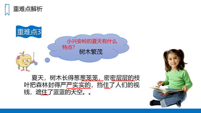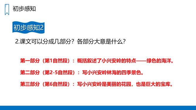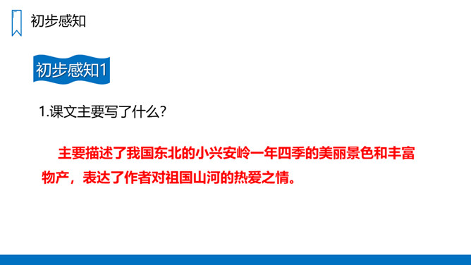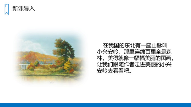 在我国的东北有一座山脉叫小兴安岭。那里连绵百里全是森林,美得就像一幅幅美丽的图画,让我们跟随作者走进美丽的小兴安岭去看看吧。作者是怎样描写小兴安岭的景物的?抓住了小兴安岭每个季节的景物特点来写。让我们充分地感受到了小兴安岭的美丽。浸”字用的真妙,它让我感受到森林就像一幅水墨画,画面有一种朦胧美,非常生动。不仅能使人感到小兴安岭早晨雾多、雾浓的景象,而且富有动感。所属专题:美丽的小兴安岭ppt。