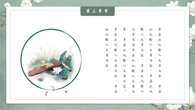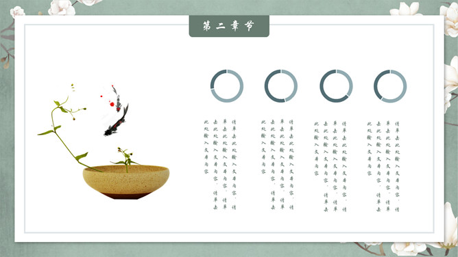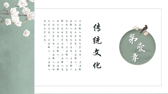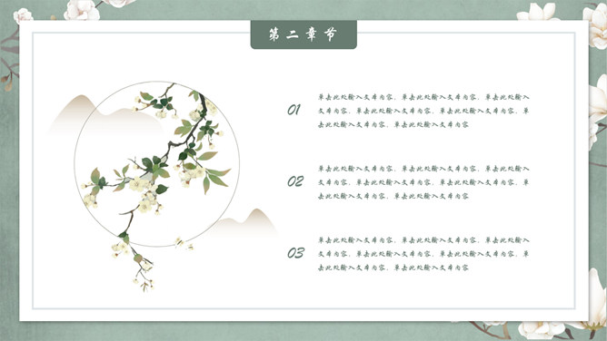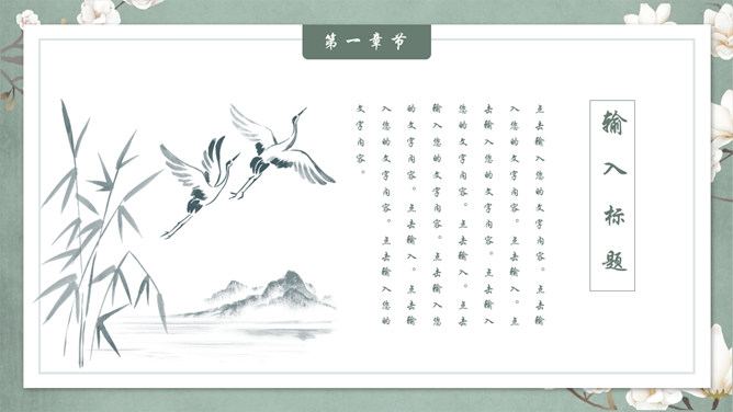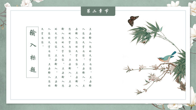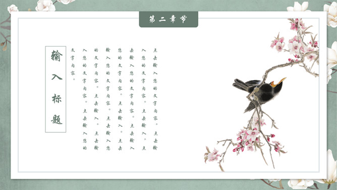 素雅古典花鸟中国风PPT模板。一套精美中国风幻灯片模板,素雅配色,优美古典花鸟元素装饰,动态播放效果。