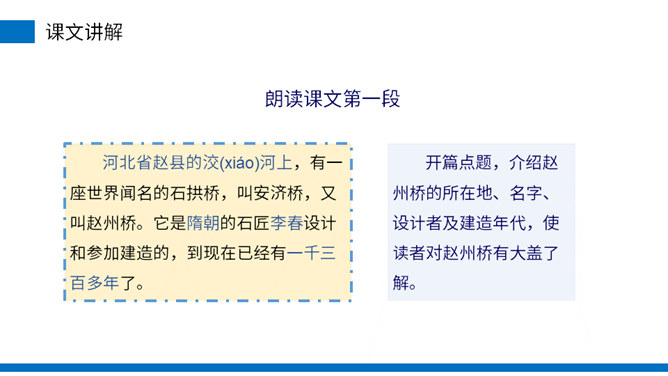 (1)不认识的字可以看拼音,或者请教老师和同学。(2)读准每一个字的字音,圈出生字词;(3)读通每个句子,读不通顺的多读几遍;(4)给每个自然段写上序号。【 设计】:按照任务的目的和要求,预先定出工作 方案和计划,绘出图样。造句:老师精心设计的问题,启发我们积极思考。第一句介绍赵州桥的特点:雄伟。这是本段的总起句。第二句从长度、宽度描写赵州桥的雄伟,采用了列数字的说明方法。所属专题:赵州桥ppt。