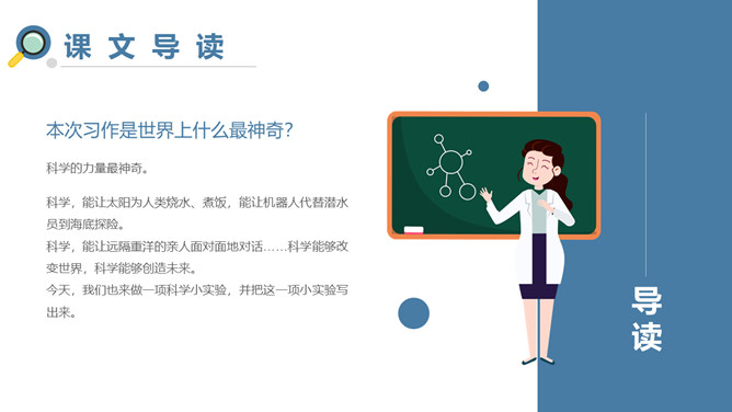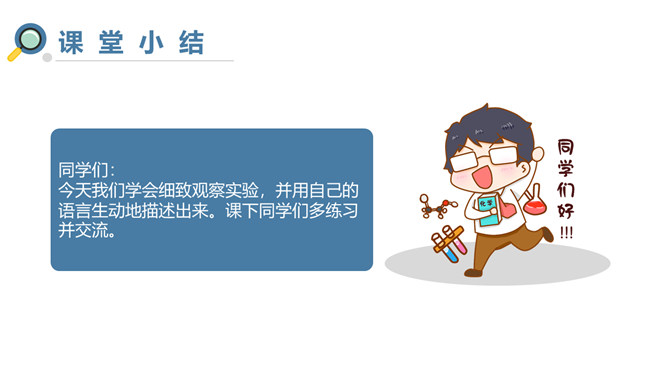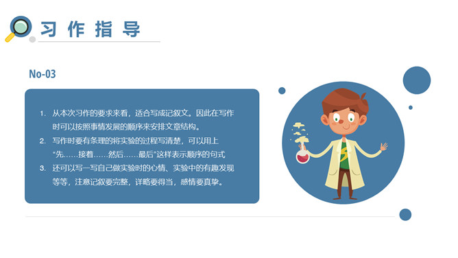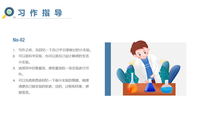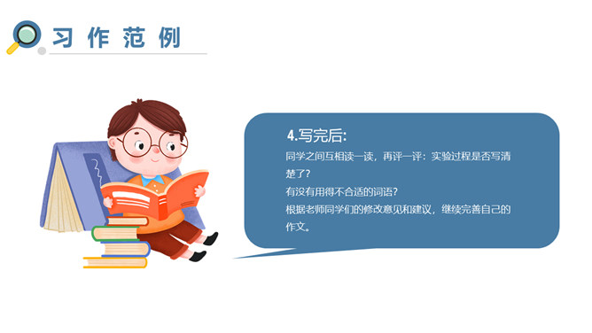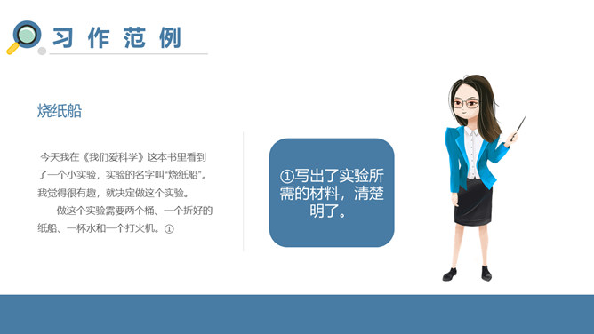 本次习作是世界上什么最神奇?科学的力量最神奇。科学,能让太阳为人类烧水、煮饭,能让机器人代替潜水员到海底探险。科学,能让远隔重洋的亲人面对面地对话……科学能够改变世界,科学能够创造未来。今天,我们也来做一项科学小实验,并把这一项小实验写出来。本次习作要求写一次自己做过的一项小实验,即实验是整篇文章的写作中心。因此实验的原因、过程和结果(尤其是过程)应当可以作为一个重点,当然也可以主要表达自己从中获得感悟。所属专题:我做了一项小实验ppt。