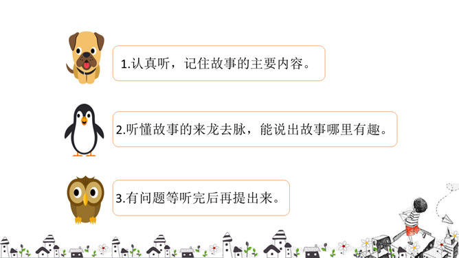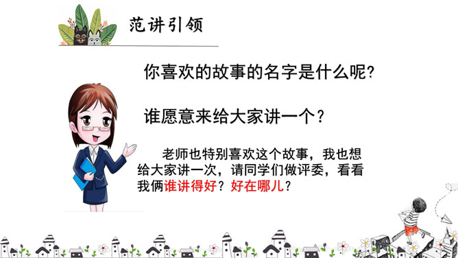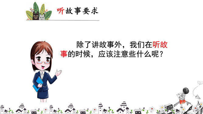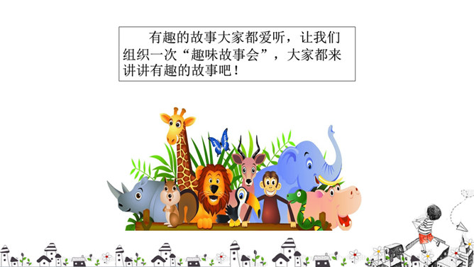 有趣的故事大家都爱听,让我们组织一次“趣味故事会”,大家都来讲讲有趣的故事吧!你喜欢的故事的名字是什么呢?谁愿意来给大家讲一个?老师也特别喜欢这个故事,我也想给大家讲一次,请同学们做评委,看看我俩谁讲得好?好在哪儿?说说你喜欢听谁的故事?为什么?如何讲好故事?注意语气、表情的变化,加上适当的手势。故事要生动、有趣。表情要自然、大方。除了讲故事外,我们在听故事的时候,应该注意些什么呢?所属专题:趣味故事会ppt。