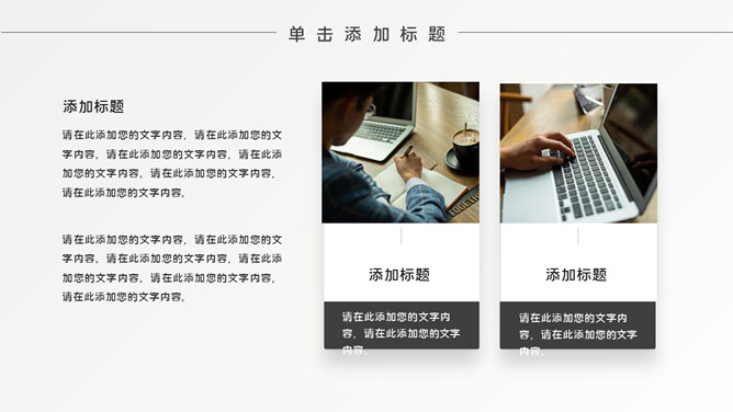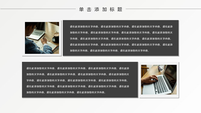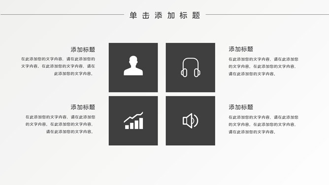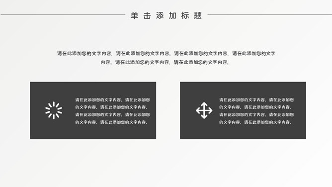 简约时尚黑灰通用PPT模板。一套通用幻灯片模板,简约设计,黑灰配色,素雅时尚,适合工作汇报、职业规划等用途。