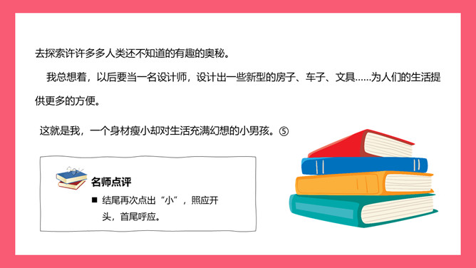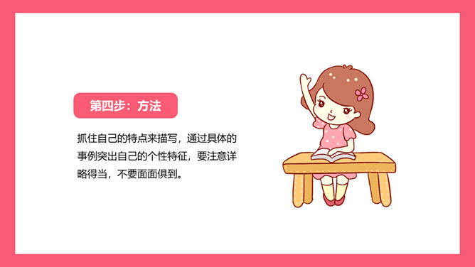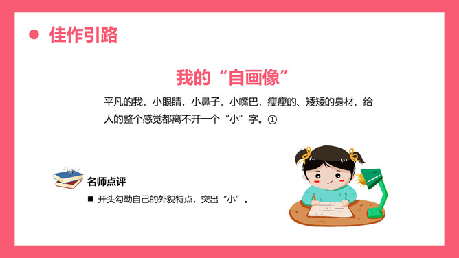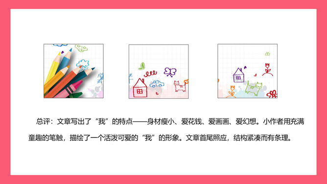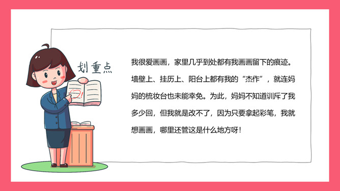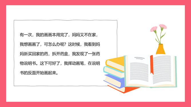 有一次,我的画画本用完了,妈妈又不在家,我想画画了,可怎么办呢?这时候,我看到妈妈新买回家的药,拆开药盒,我发现了一张药物说明书。这下可好了,我挥动画笔,在说明书的反面开始画起来。我的小脑瓜里,常常挤满了各种各样的想法。我总想着,每次考试都能拿高分,让同学们都羡慕我。我总想着,以后要当一名航天员,飞到那神秘的太空里,去探索许许多多人类还不知道的有趣的奥秘。我总想着,以后要当一名设计师,设计出一些新型的房子、车子、文具……为人们的生活提供更多的方便。所属专题:我的自画像ppt。