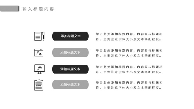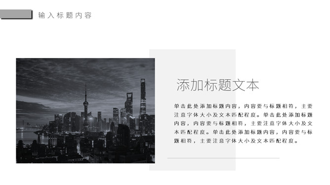 极简素雅灰色通用PPT模板。一套简约通用幻灯片模板,白色背景,素雅黑灰配色,适合工作汇报总结等用途。